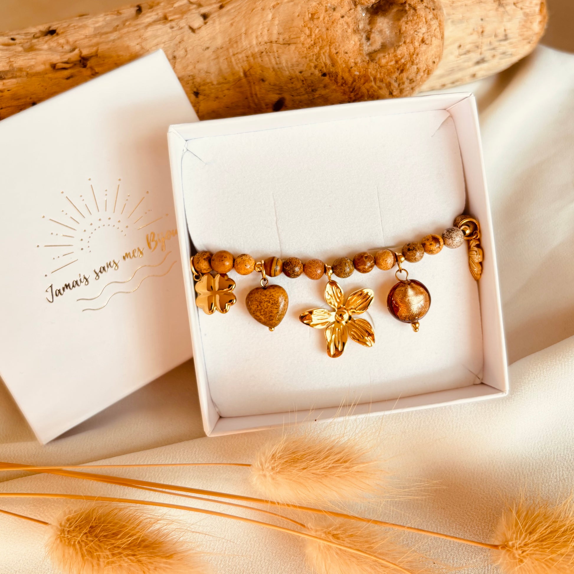 - Bracelet breloques en acier inoxydable doré.