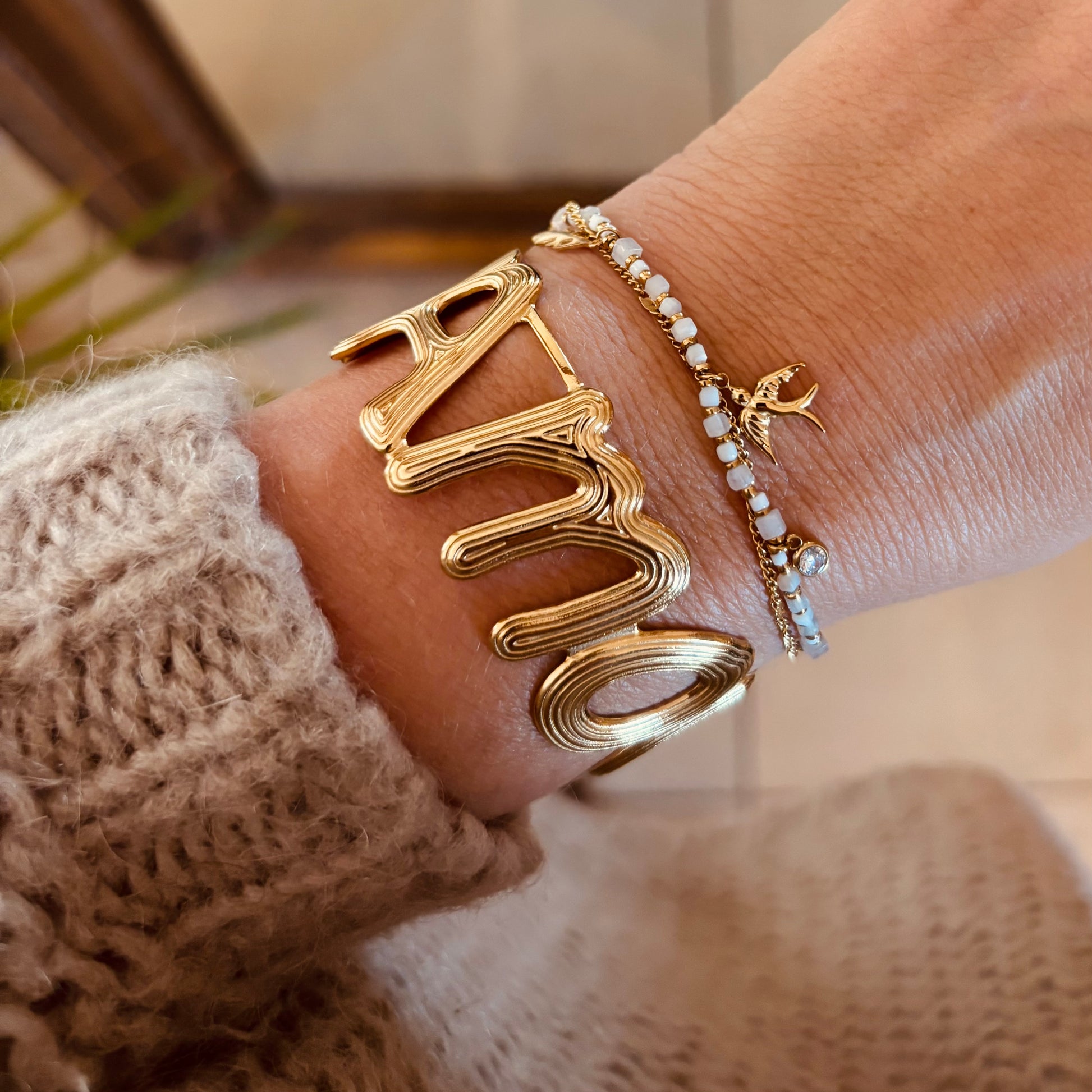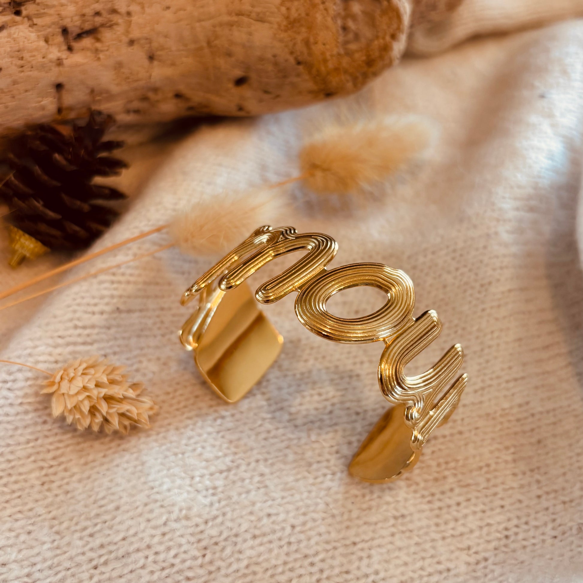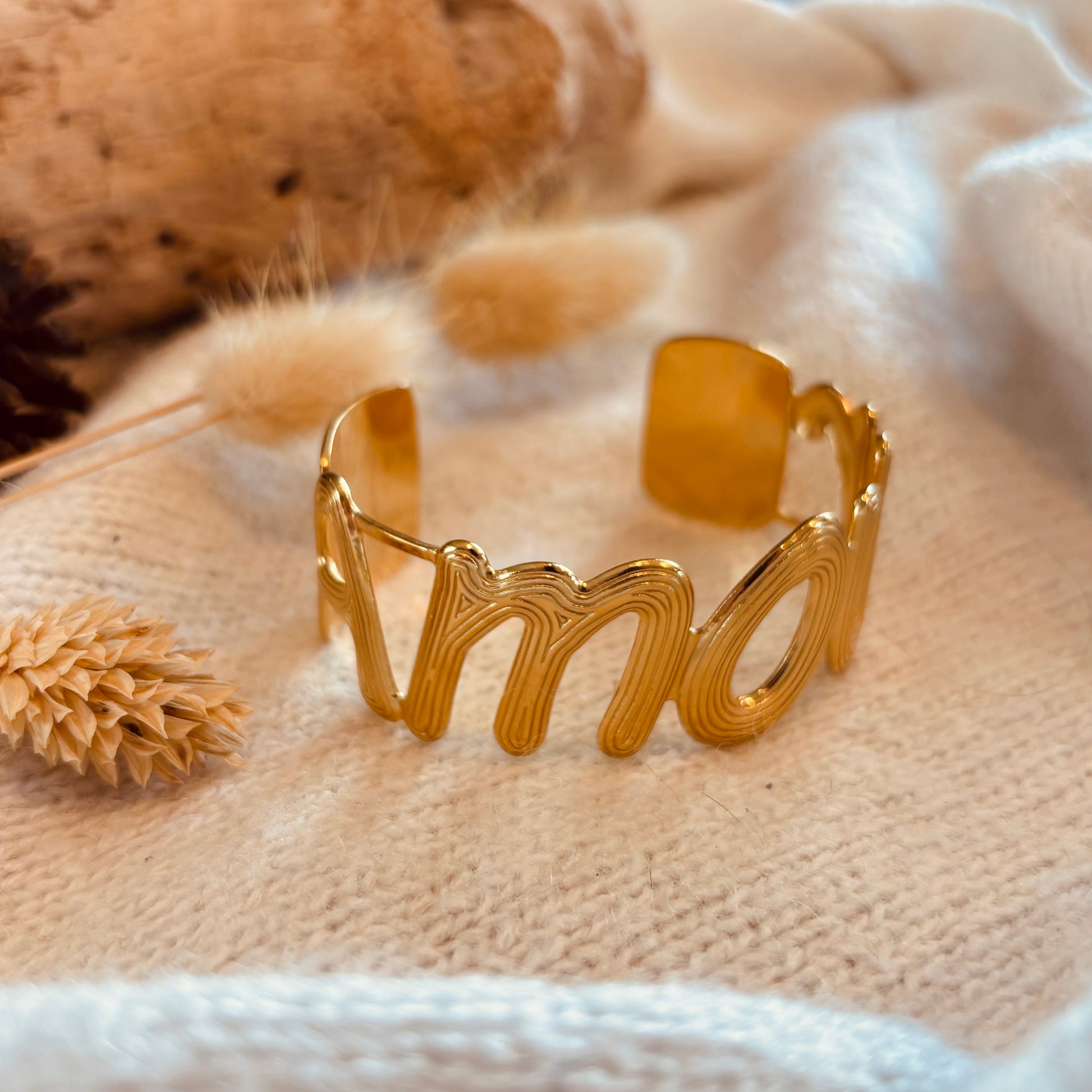 - Jonc en acier inoxydable doré.